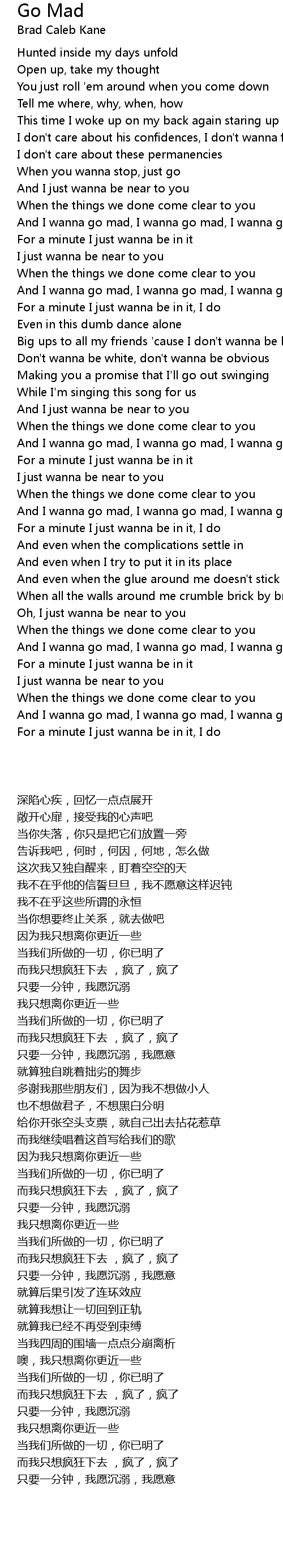 And I wanna go mad, I wanna go mad, I wanna go mad |