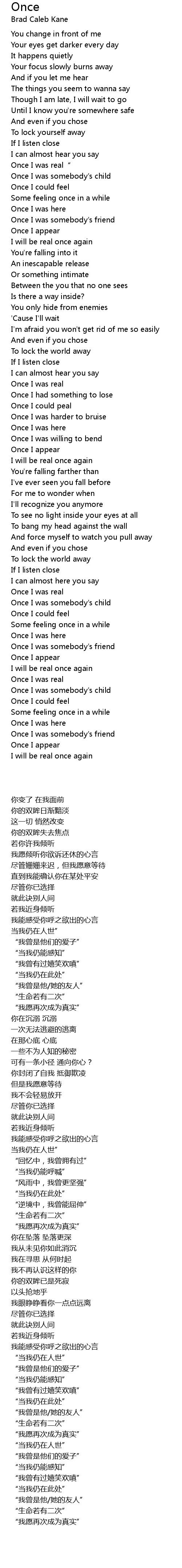 | [00:55.550] | Once I was real" |