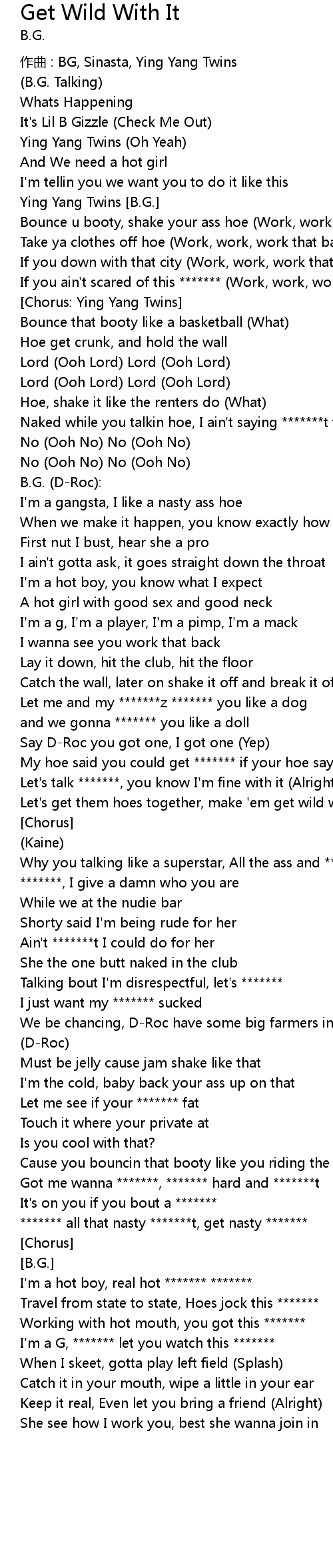 | ******* all that nasty *******t, get nasty ******* | |
