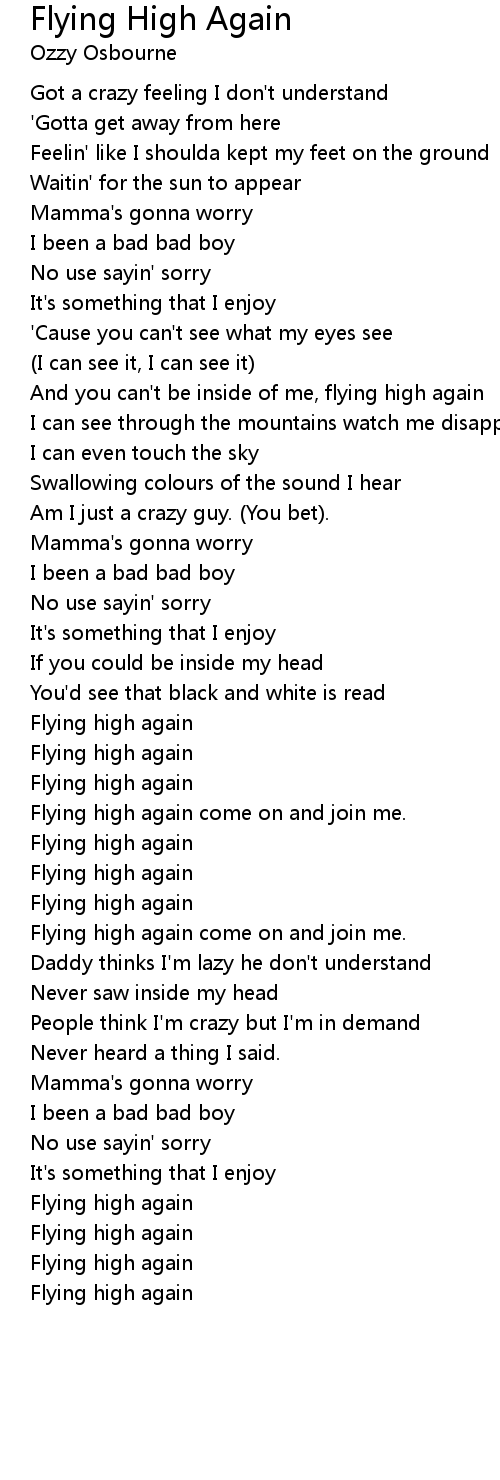 And you can't be inside of me, flying high again |