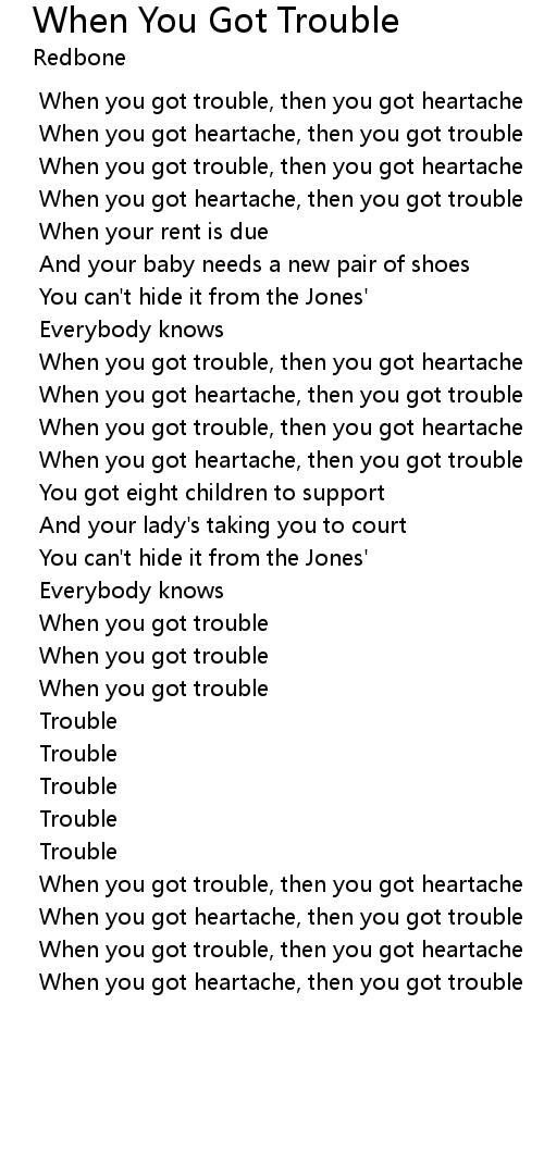 When you got heartache, then you got trouble |