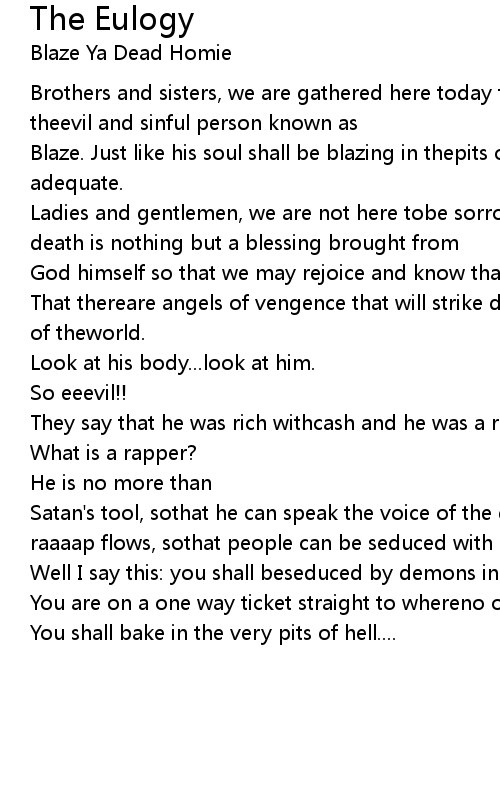 Brothers and sisters, we are gathered here today to celebrate in the loss of theevil and sinful person known as |