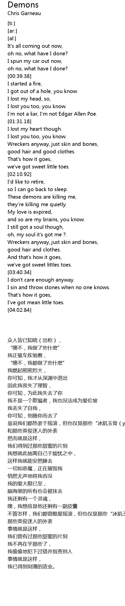 These demons are killing me, |