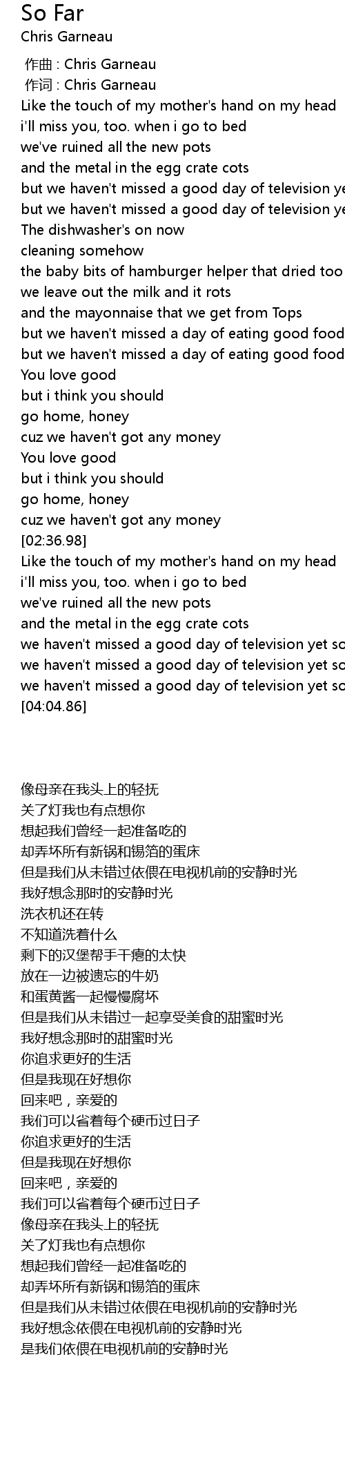 | [00:01.00] | 作词 : Chris Garneau |