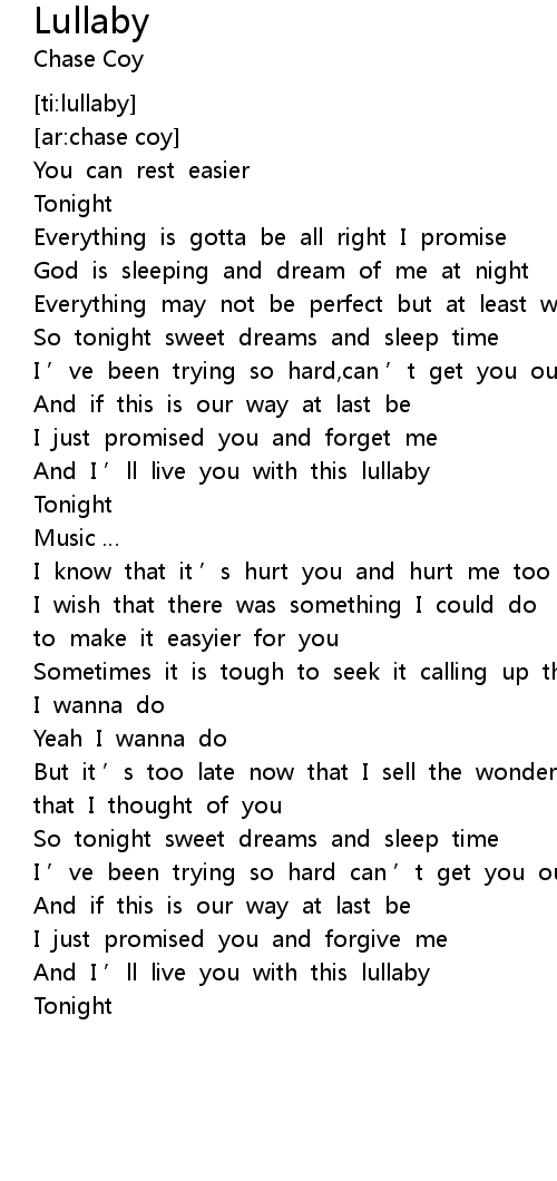 | [01:06.557] | And I ’ll live you with this lullaby |