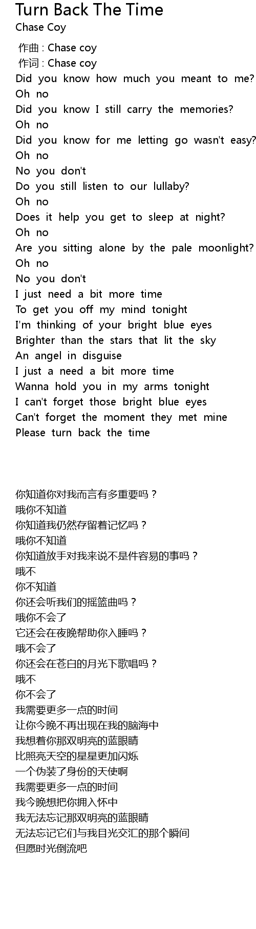 | 歌曲 | Turn Back The Time |