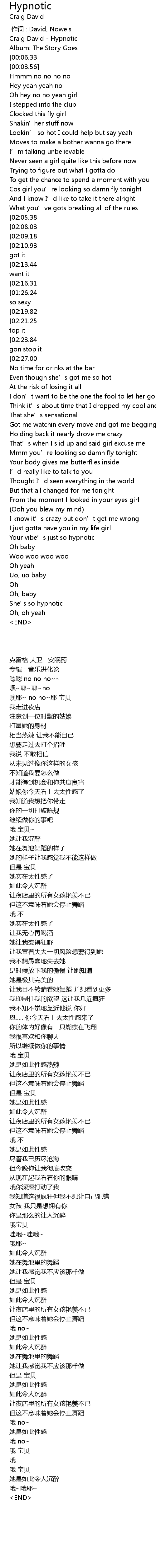 | [01:07.24][02:09.18] | She' s so hypnotic |