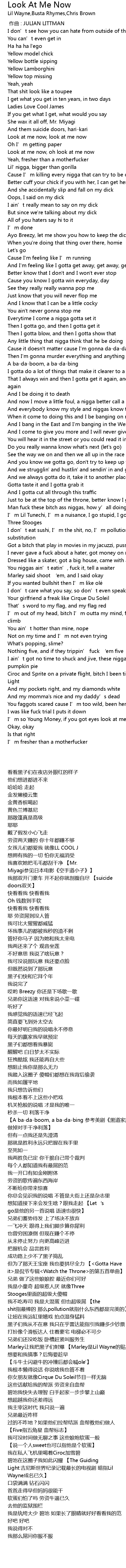 | [02:39.86] | Marley让我把黑子们射爆 【Marley是Lil Wayne的贴身保镖】 |