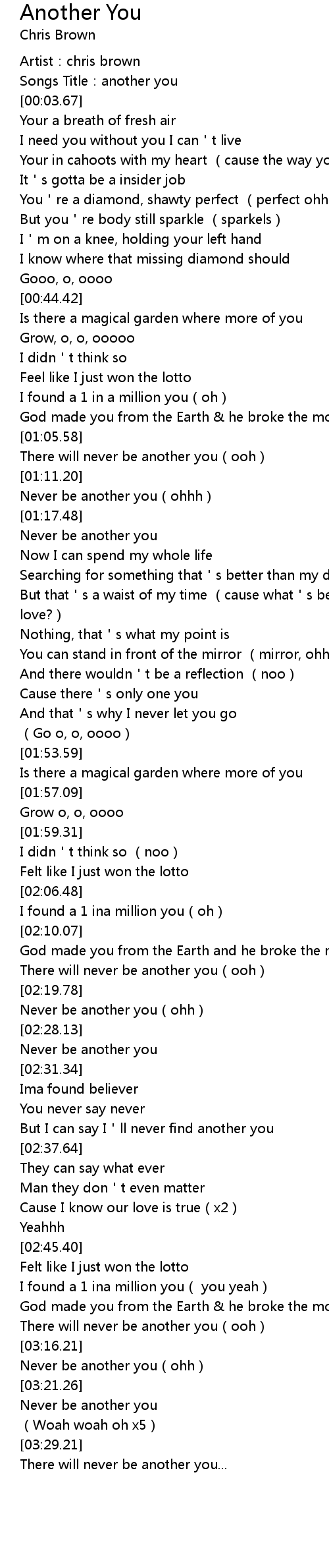 | [03:02.20] | I found a 1 ina million you you yeah |