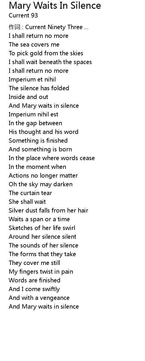 | 歌曲 | Mary Waits In Silence |