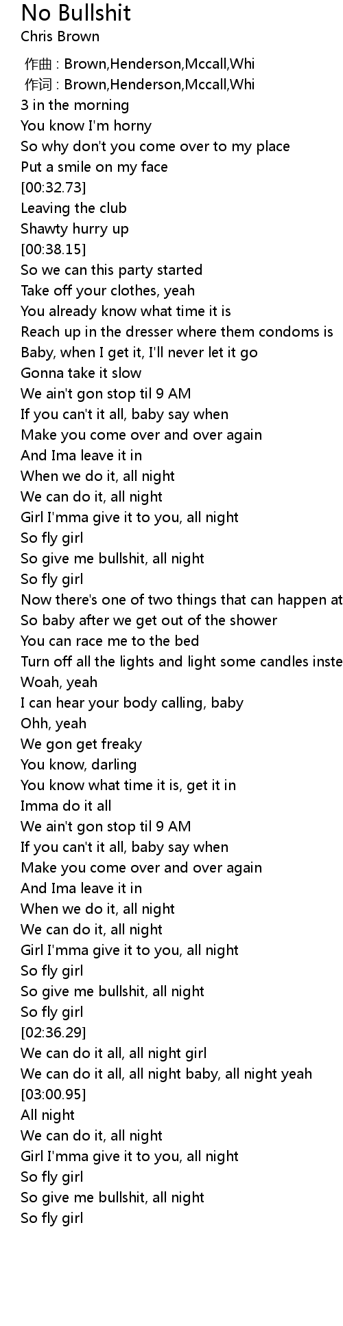 | [03:10.34] | So give me bullshit, all night |