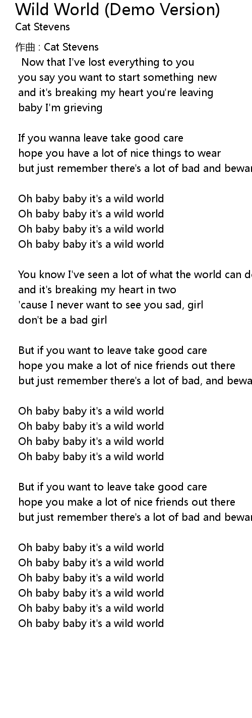 | Oh baby baby it' s a wild world | |