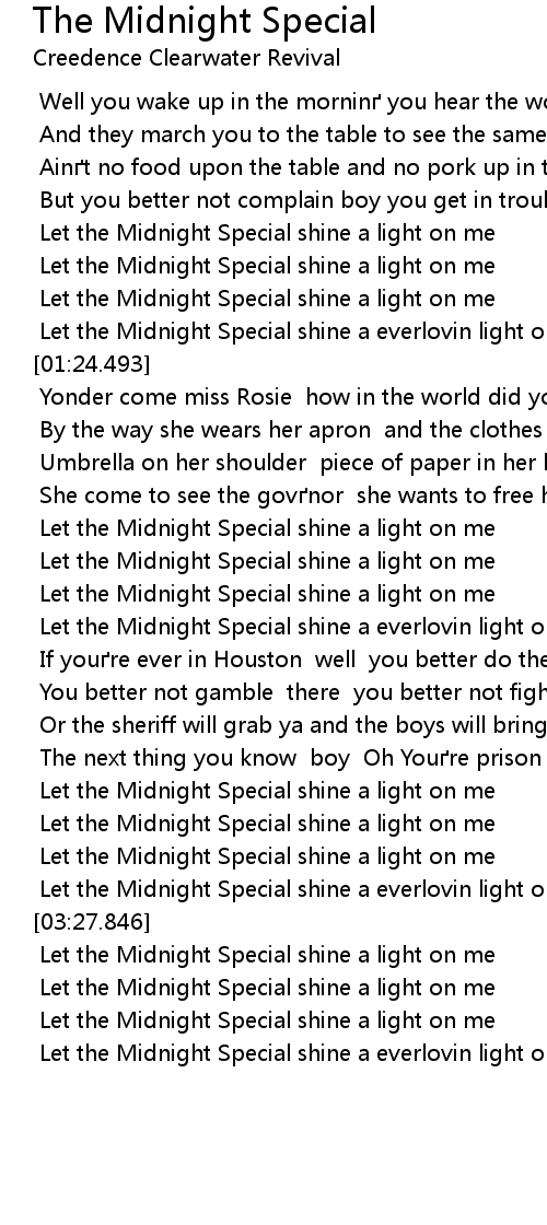 | [03:51.157] | Let the Midnight Special shine a everlovin light on me |