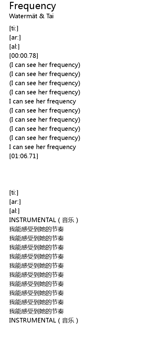 | [00:54.83] | I can see her frequency |