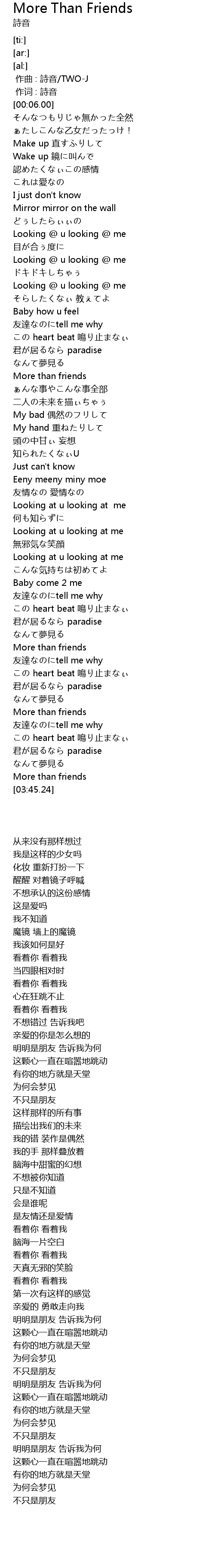 | [01:22.41] | 明明是朋友 告诉我为何 |