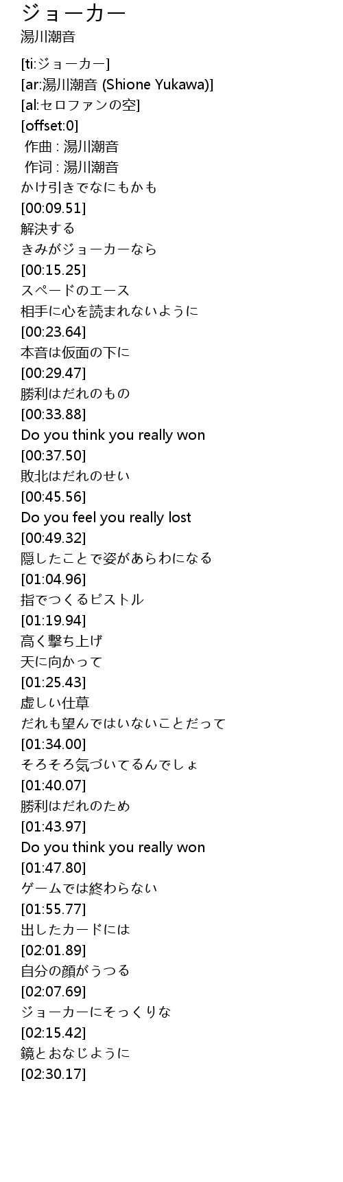 | [00:00.00] | 作曲 : 湯川潮音 |