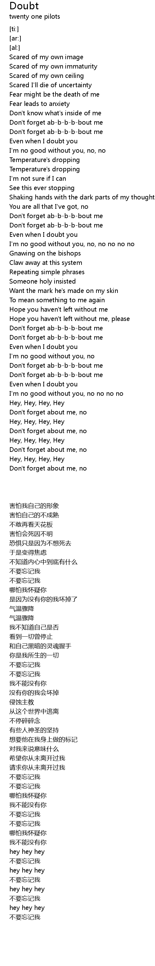 Scared I'll die of uncertainty |