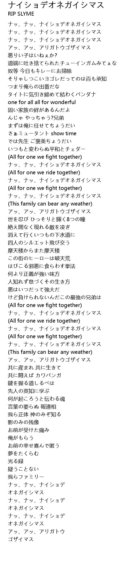 | (All for one we fight together) | |