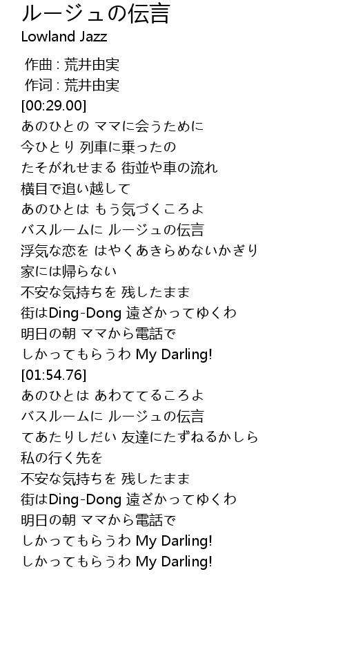 | [01:34.34] | 街はDing-Dong 遠ざかってゆくわ |