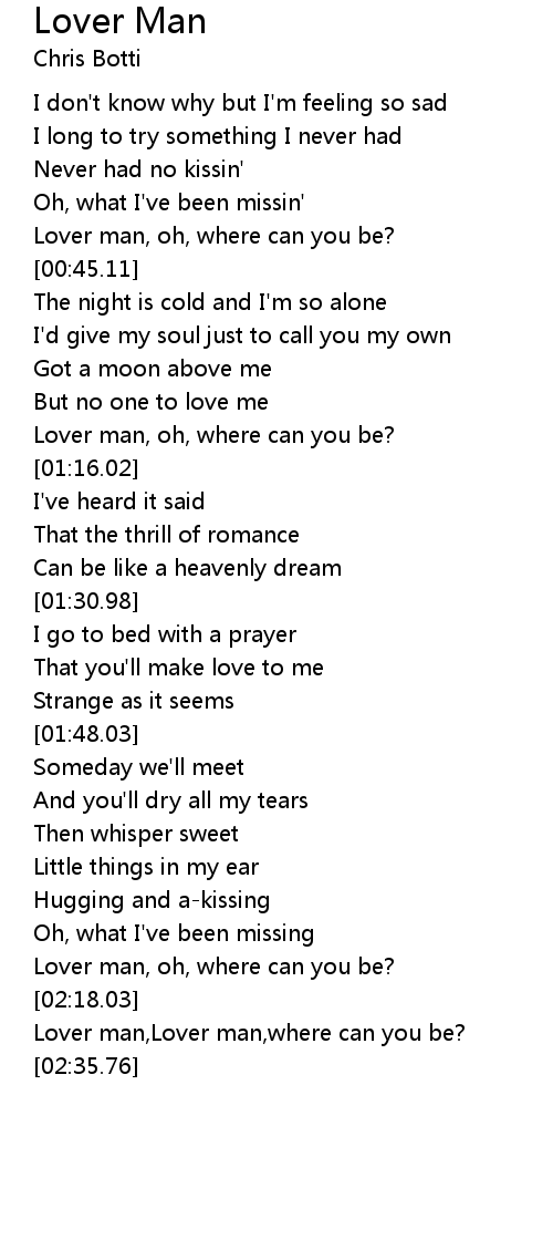 Lover man, oh, where can you be? |