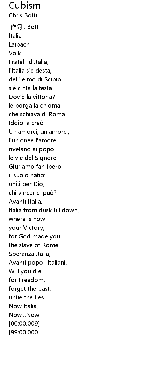 | [03:45.42] | Avanti popoli Italiani, |