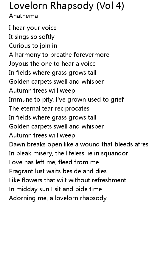 Adorning me, a lovelorn rhapsody |