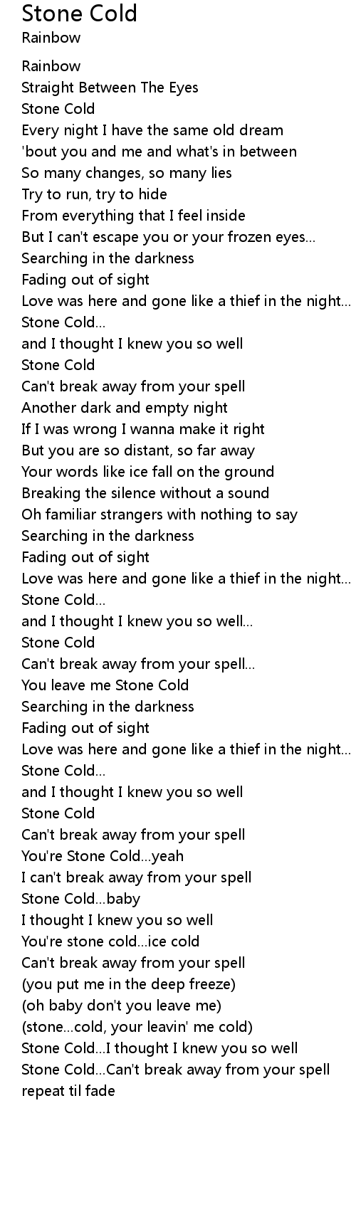 Stone Cold...Can't break away from your spell |