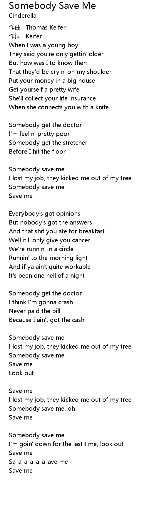 | Somebody save me, oh | |