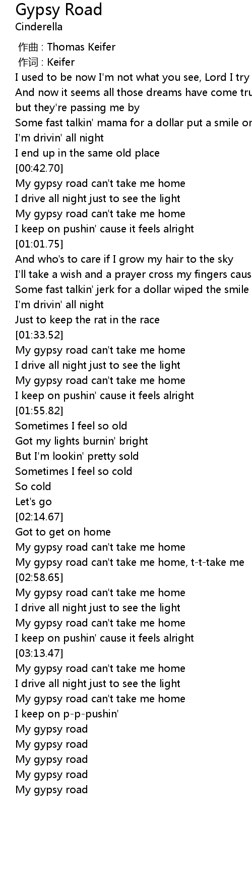 | [02:50.01] | My gypsy road can't take me home, t-t-take me |