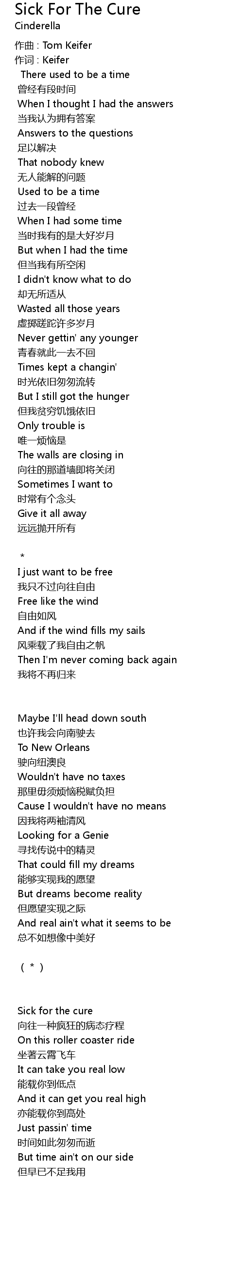 | 歌曲 | Sick For The Cure |