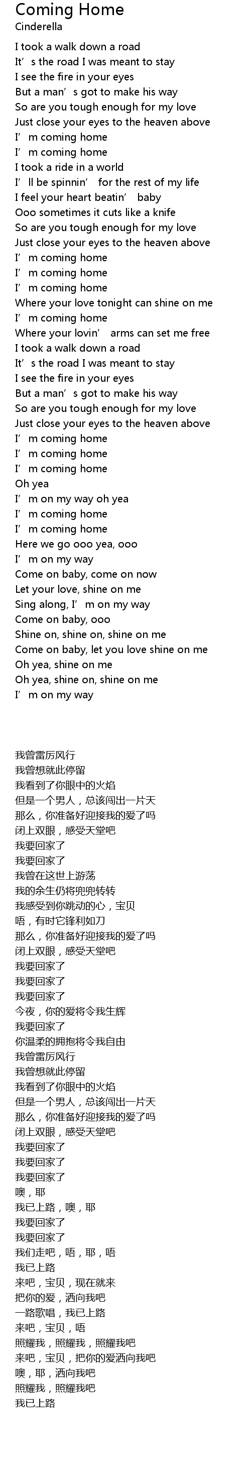 | 歌曲 | Coming Home |