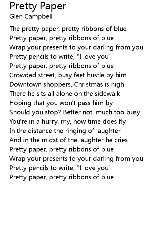 Pretty paper, pretty ribbons of blue |