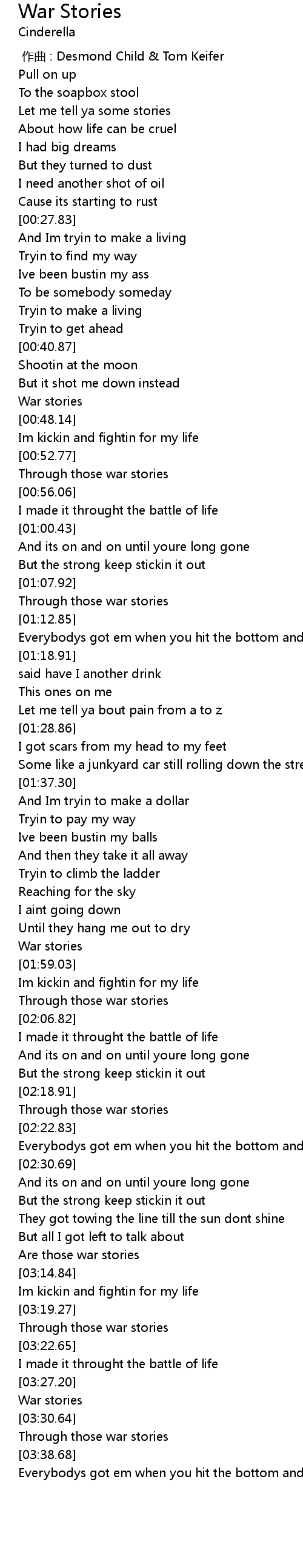 | [03:28.01] | War stories |