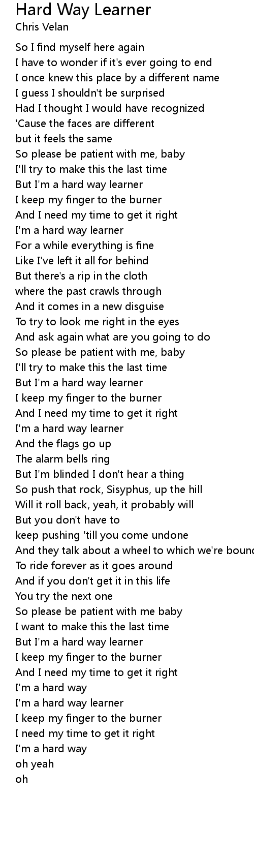 But I'm a hard way learner |