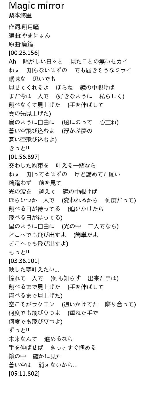 | [01:09.961] | 見せてくれるよ ほらね 鏡の中覗けば |