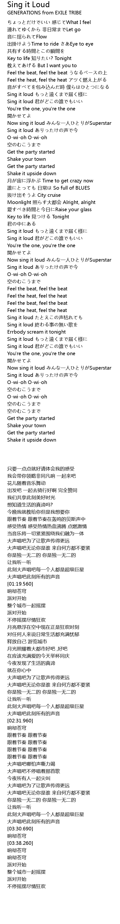 | [03:00.650] | Sing it loud zhong shi wu ge |