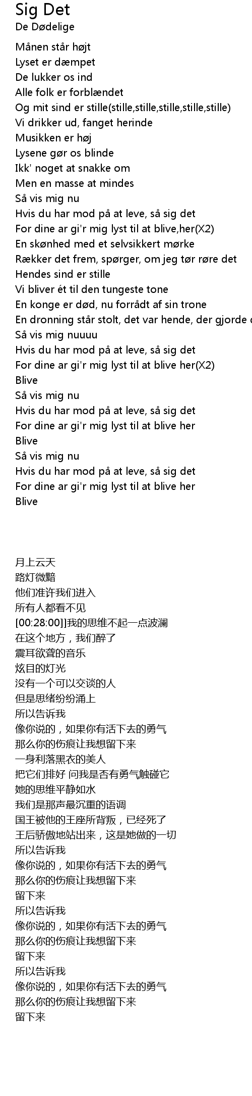 | [00:28:00] | Og mit sind er stille(stille,stille,stille,stille,stille) |