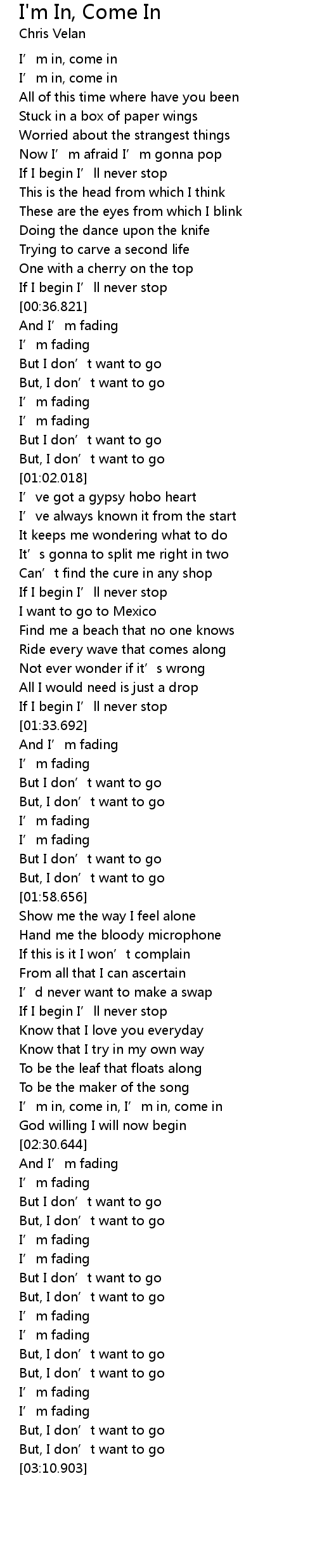 | [03:01.000] | I’m fading |
