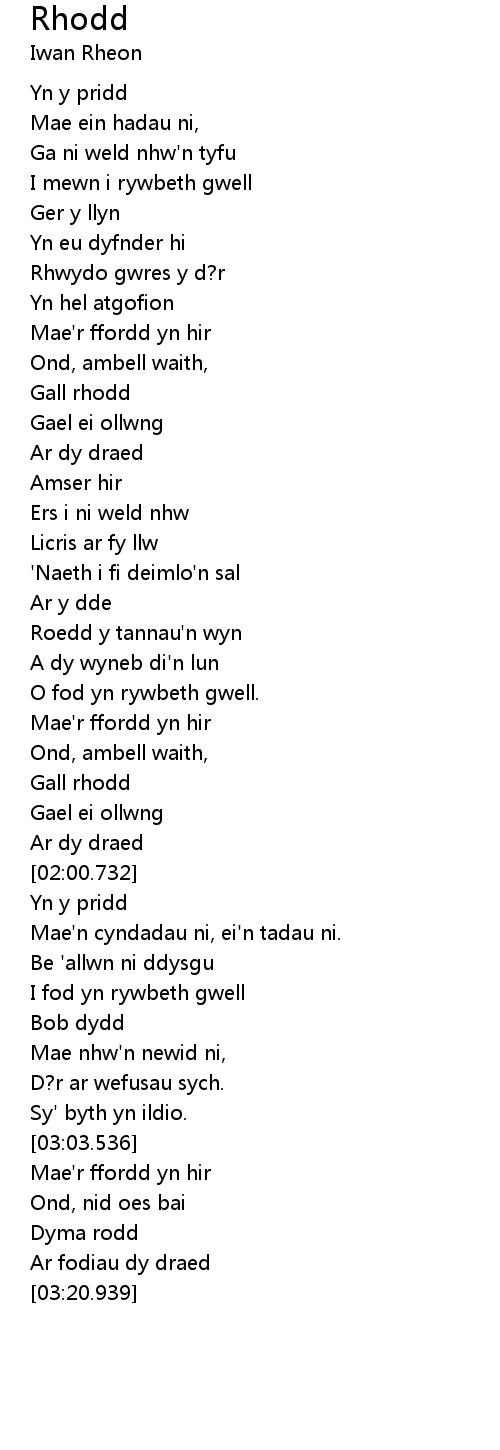 | [01:43.664] | Mae'r ffordd yn hir |