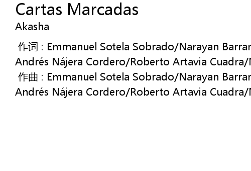 | [00:00.000] | zuo qu : Emmanuel Sotela Sobrado Narayan Barrantes Calvo Julio Andre s Na jera Cordero Roberto Artavia Cuadra Manuel Jose Villalobos Borbo n |