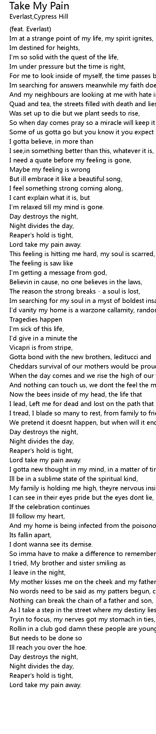 Lord take my pain away. |