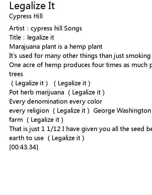 | [00:15.50] | Pot herb marijuana Legalize it |