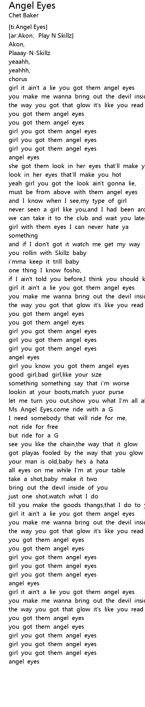 | [02:51.912] | girl it ain' t a lie you got them angel eyes |