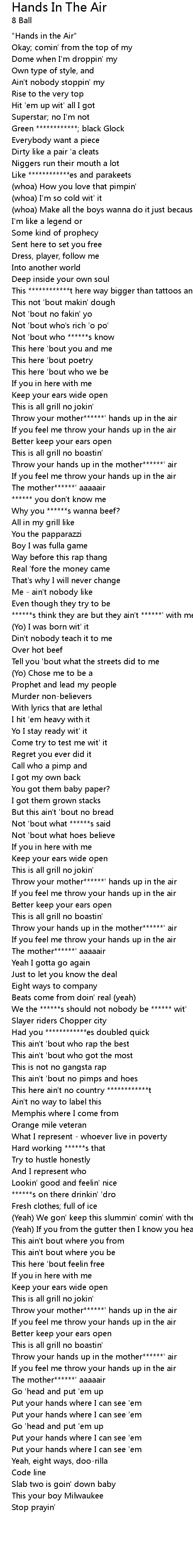 Throw your hands up in the mother******' air |
