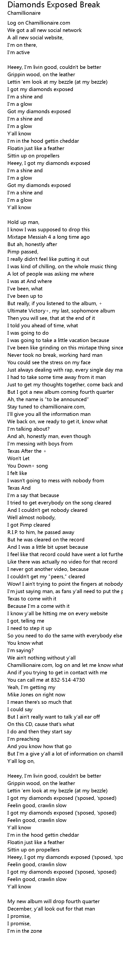 I got my diamonds exposed ('sposed, 'sposed) |