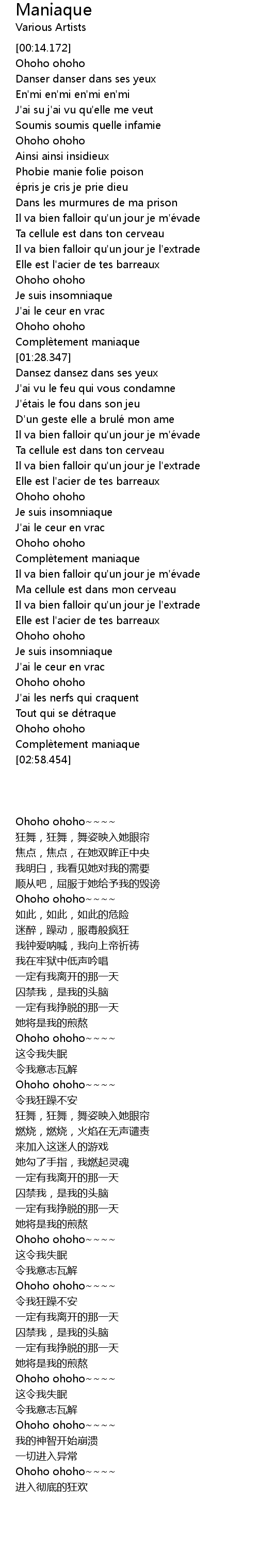 | [02:14.660] | Complè tement maniaque |