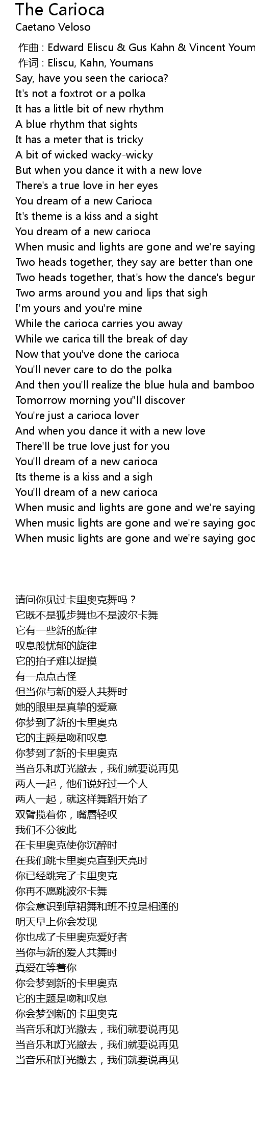 | [02:53.20] | You'll dream of a new carioca |