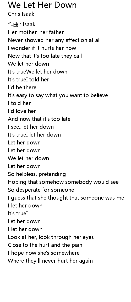 | 歌曲 | We Let Her Down |