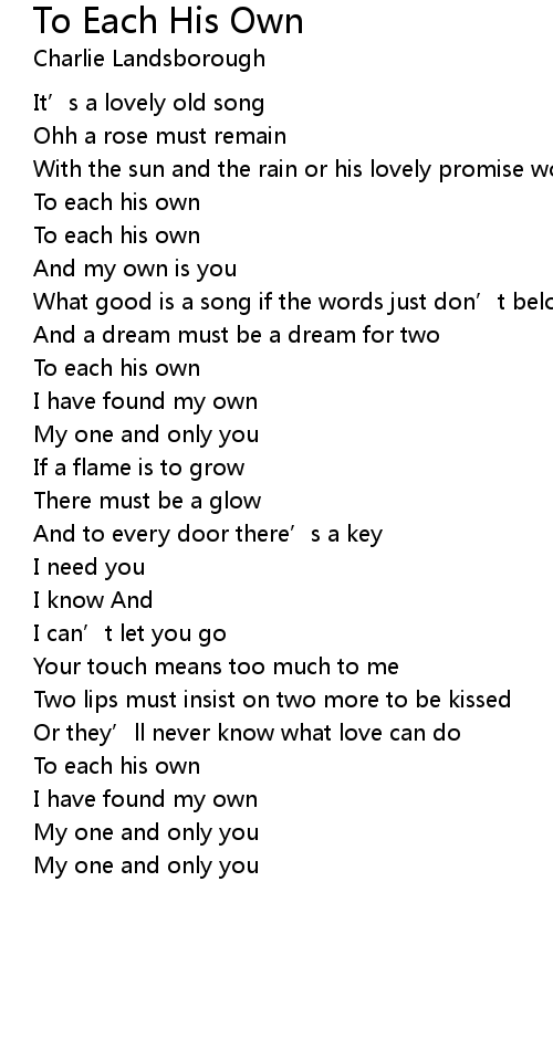 | 歌曲 | To Each His Own |