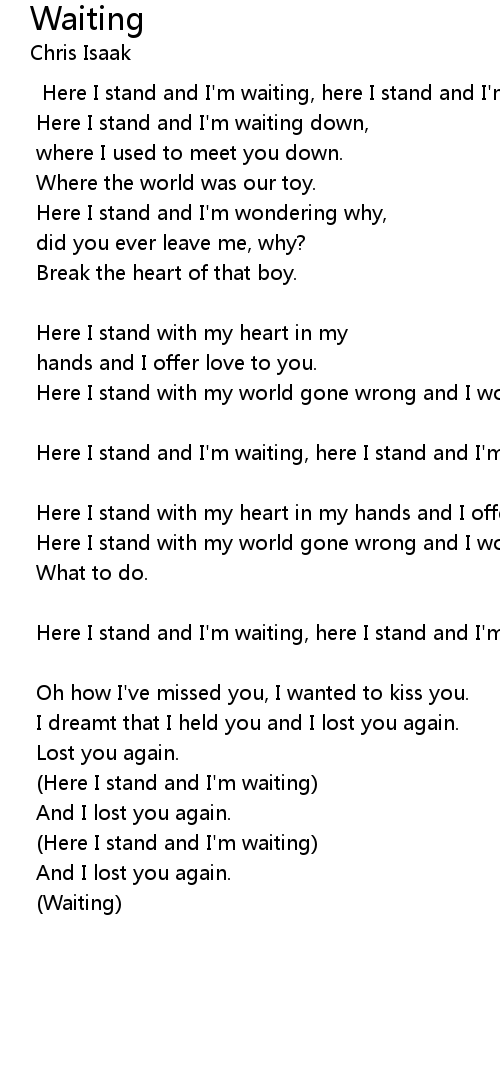 Here I stand and I'm waiting, here I stand and I'm waiting. |